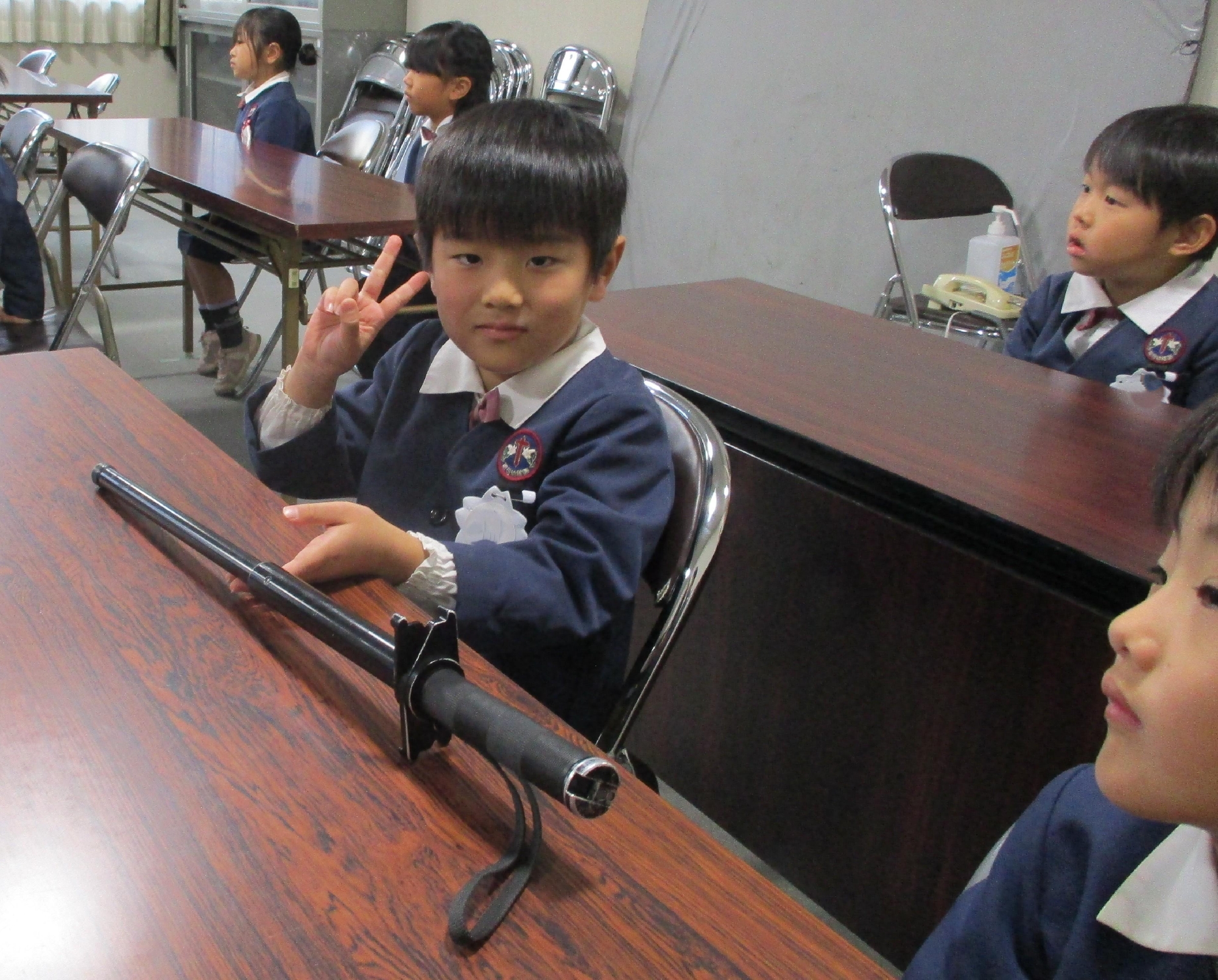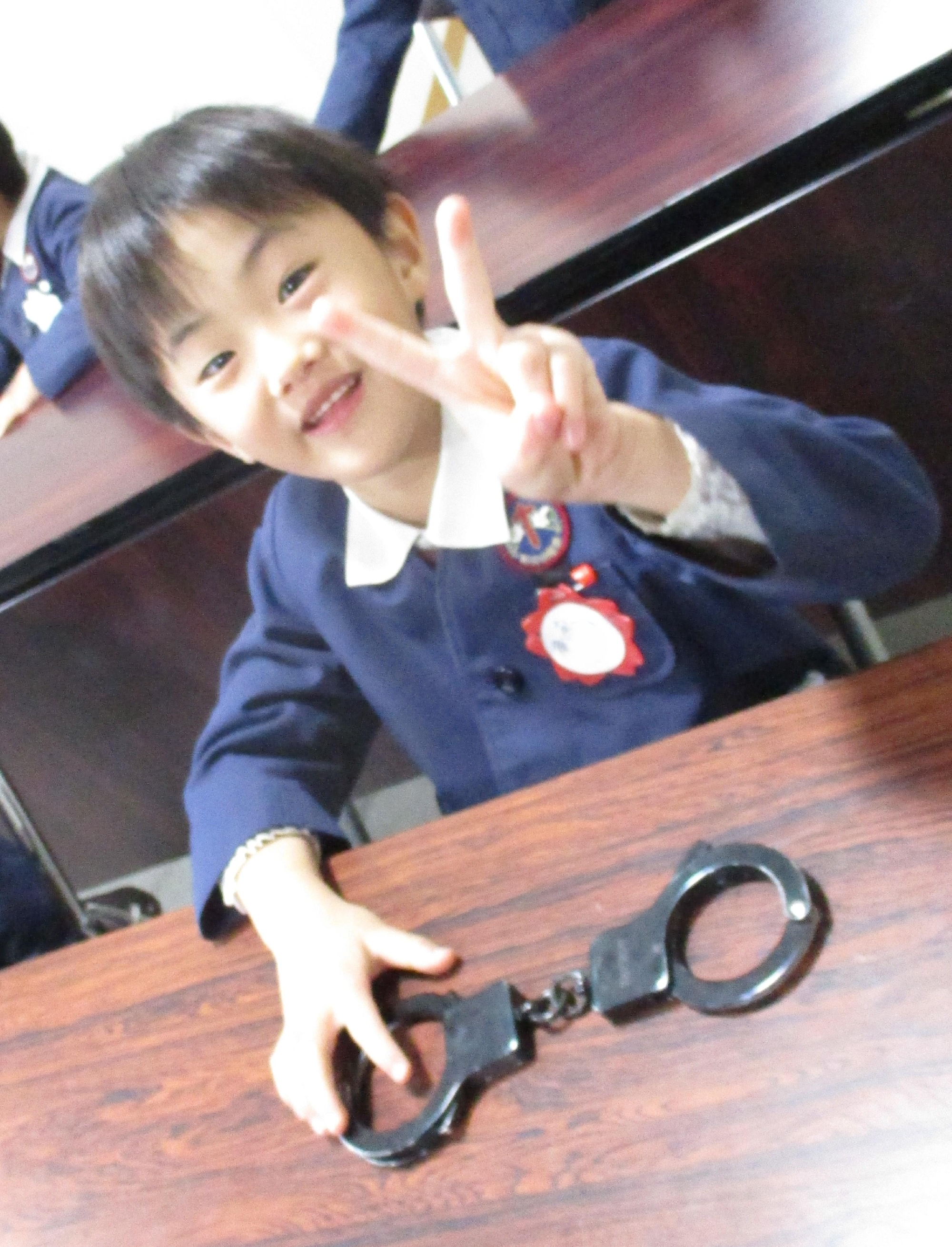 「手錠」子どもたちはどのようになっているか興味津々です!