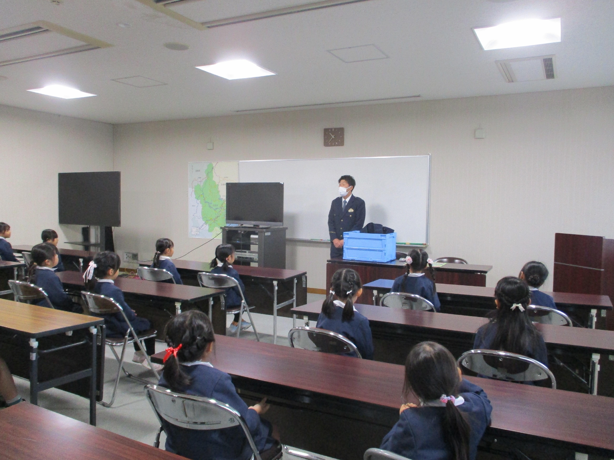 今日は、A組(年長)さんと一緒に警察署を訪問し、日頃の感謝の気持ちを伝えました。