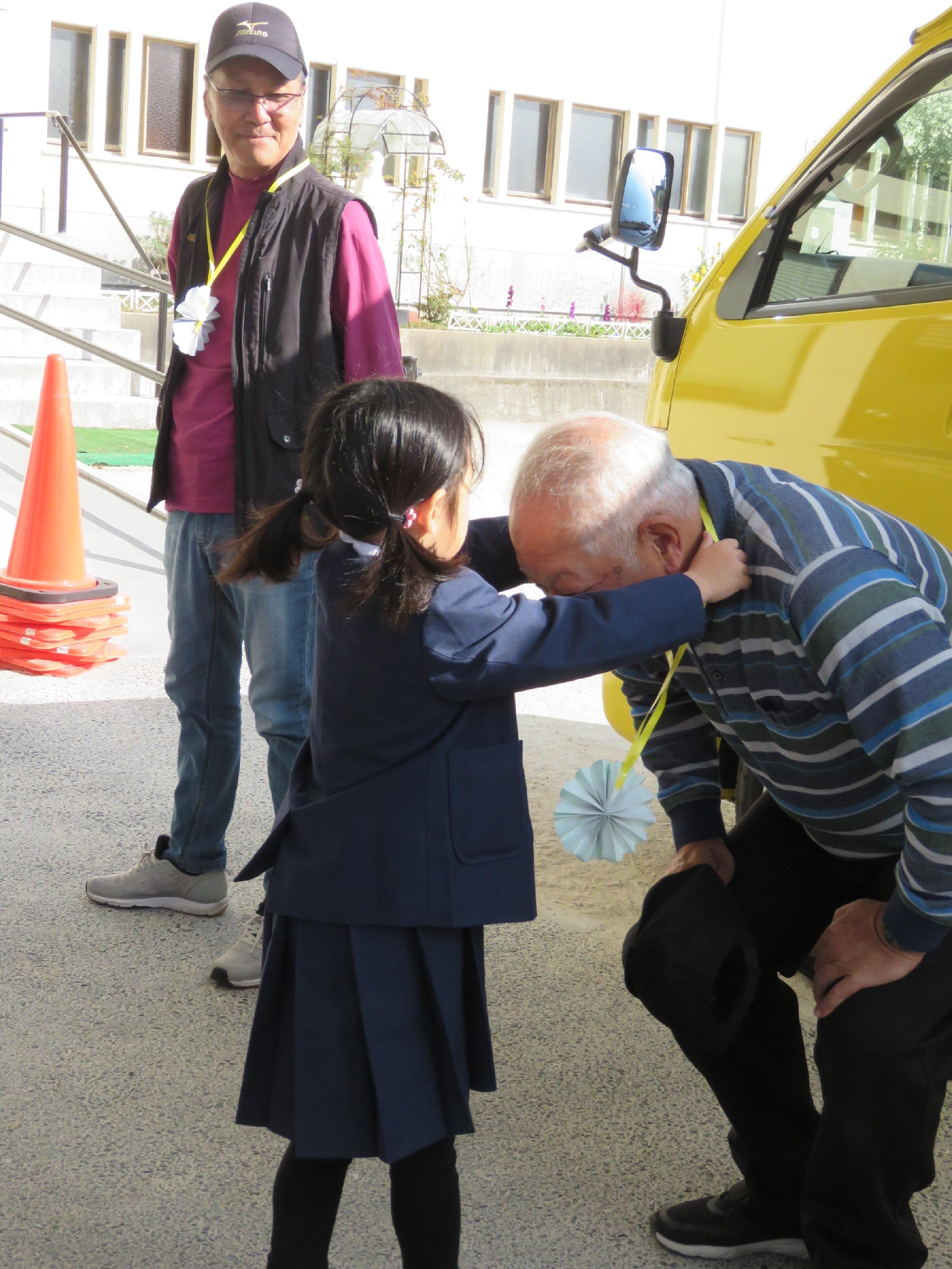 警察署出発前、運転手さんに日頃の感謝の気持ちを込めてプレゼントを渡しました!!