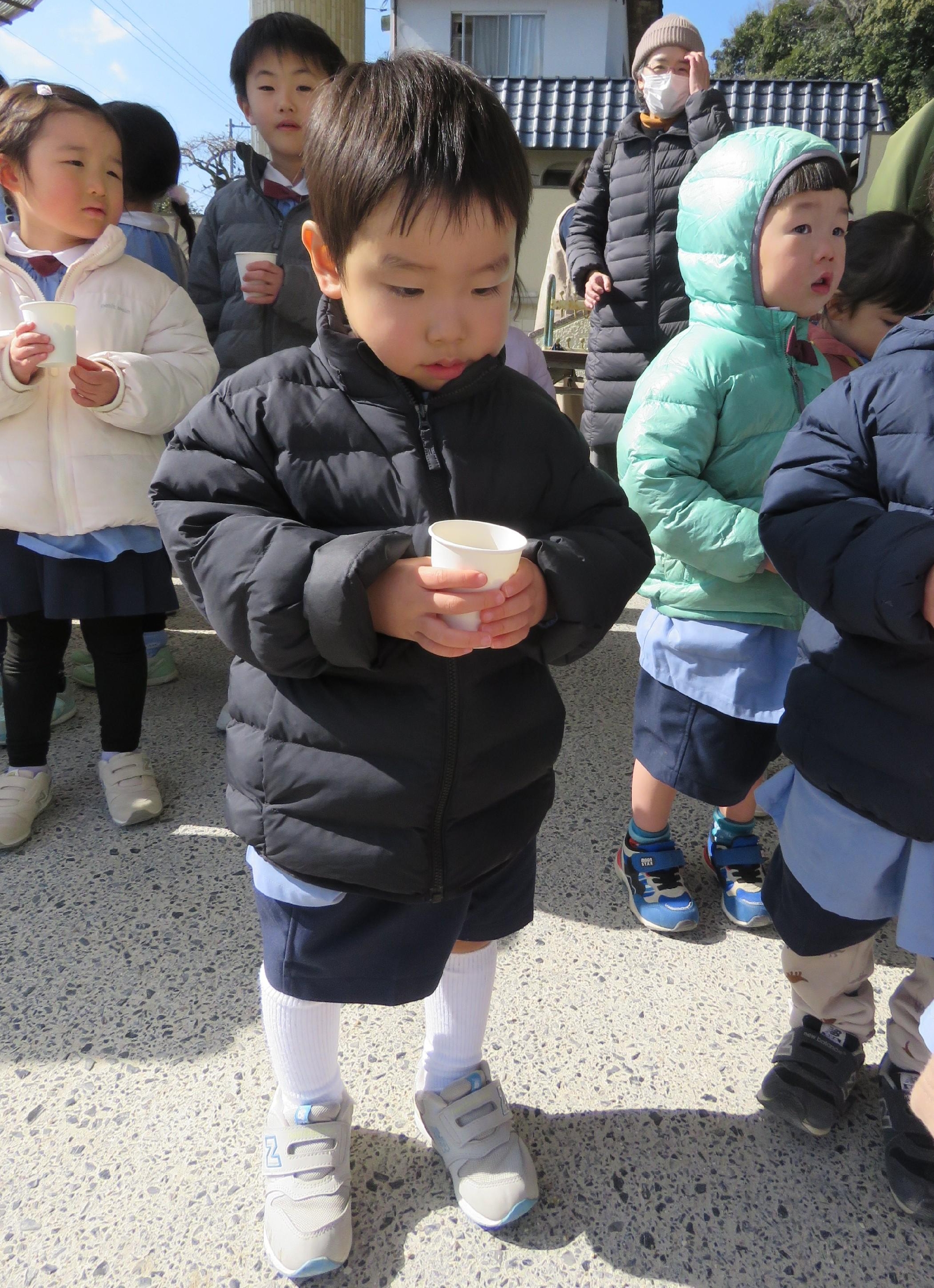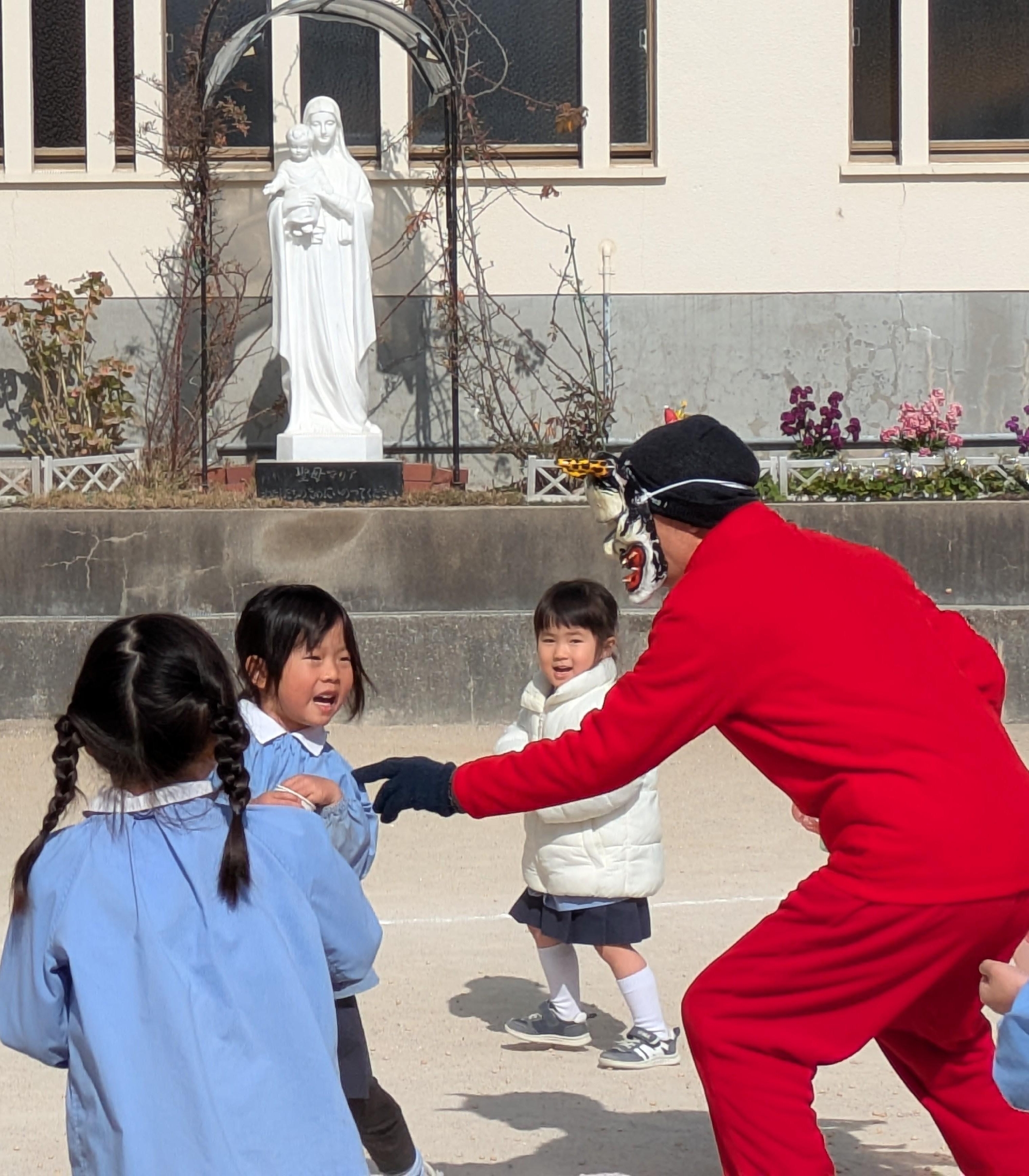 幼稚園では、全園児で豆まきを行いました♪