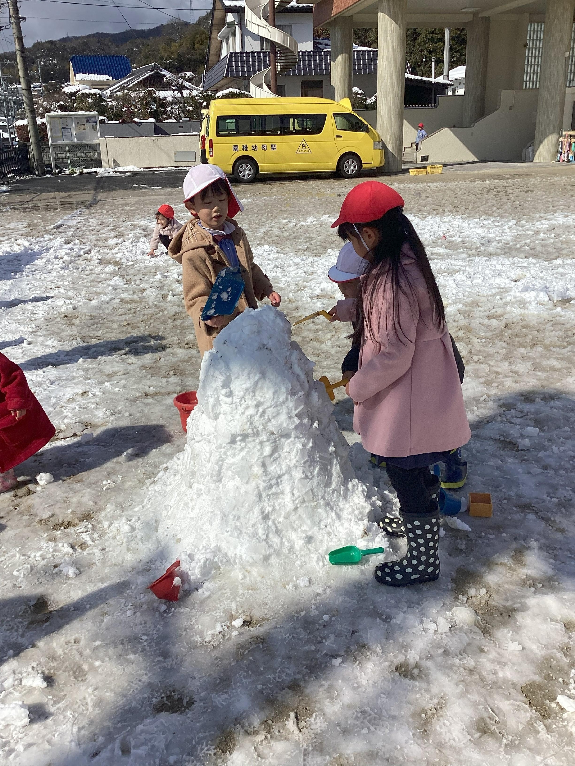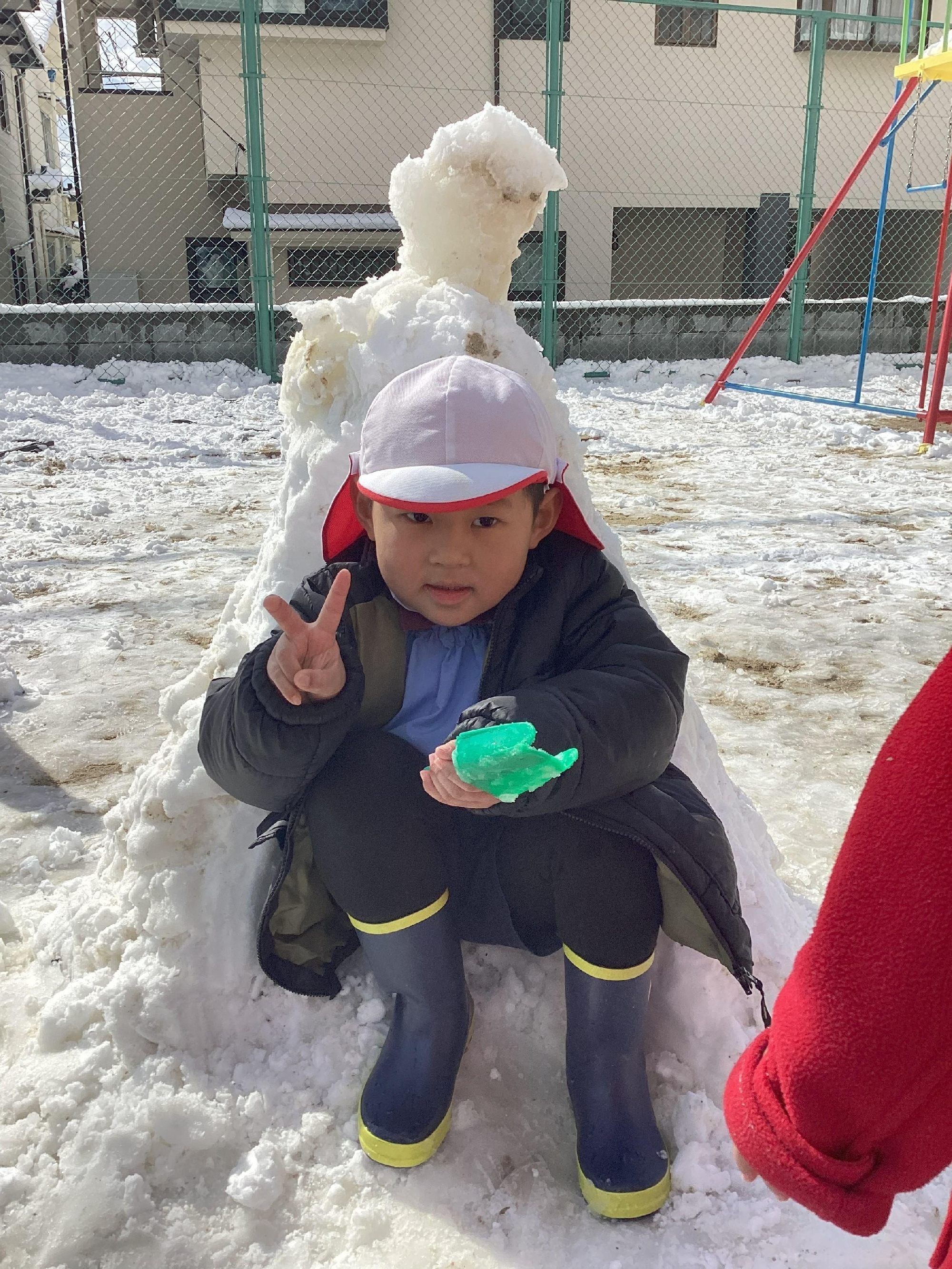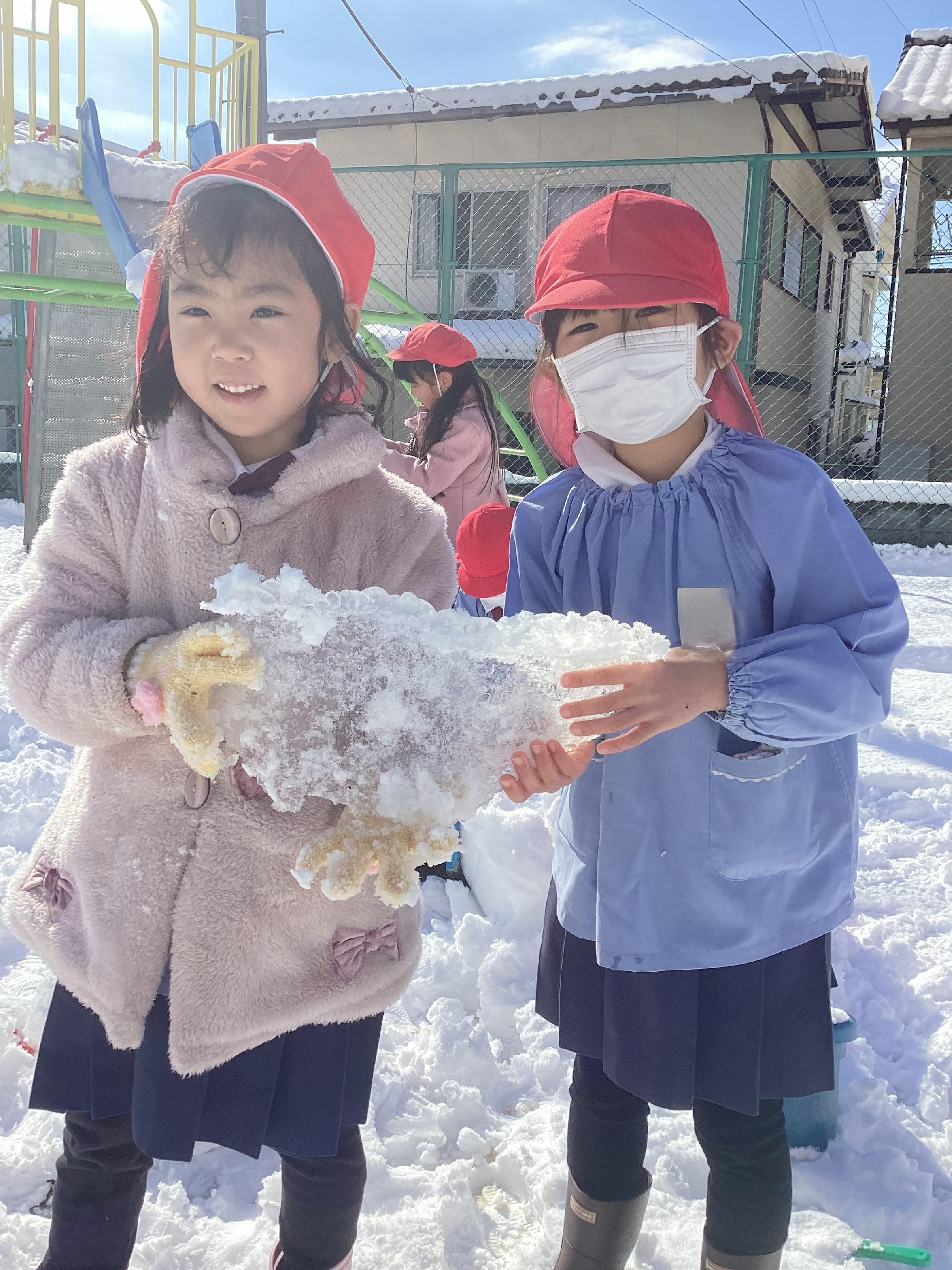 今日は雪のため、お休みのお友だちが多い1日となりましたが、登園した子どもたちは元気いっぱい雪遊びを楽しみました♪