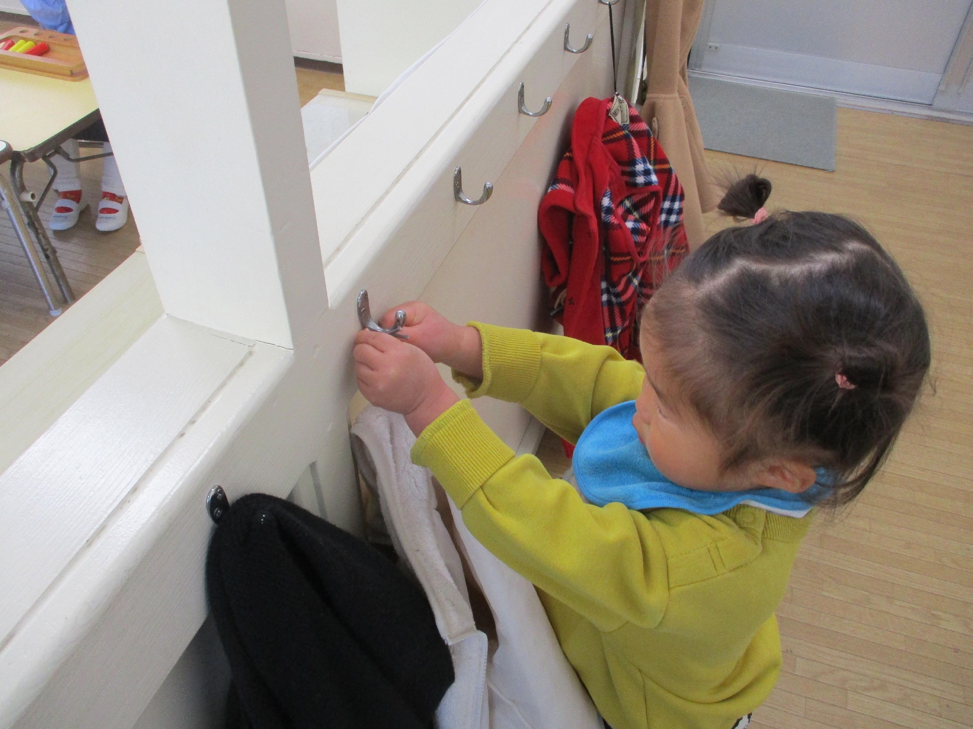 自分で着ていたジャケットをフックに掛けます!
