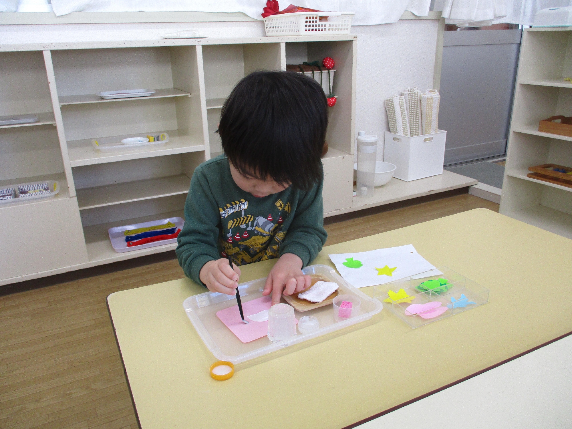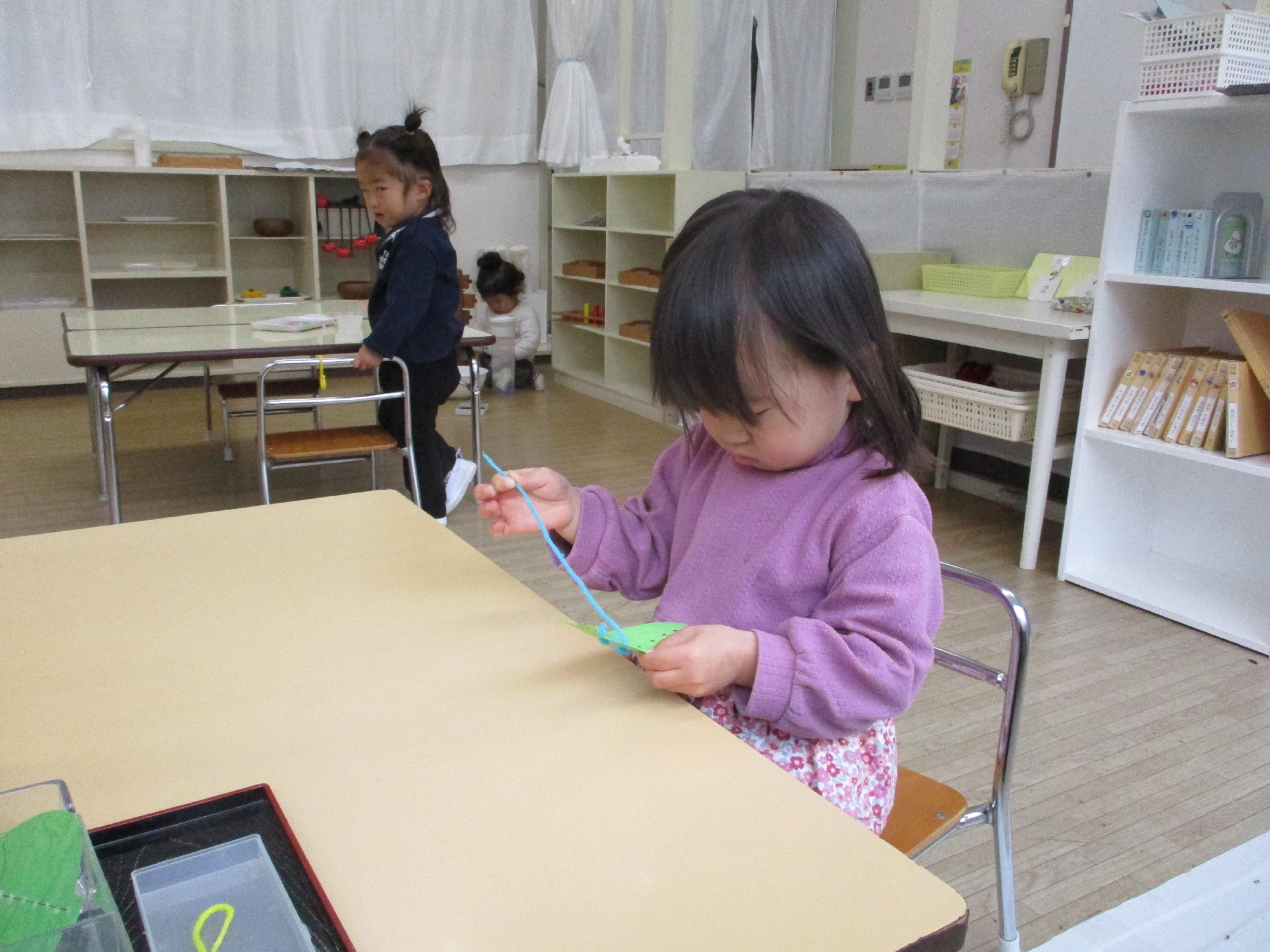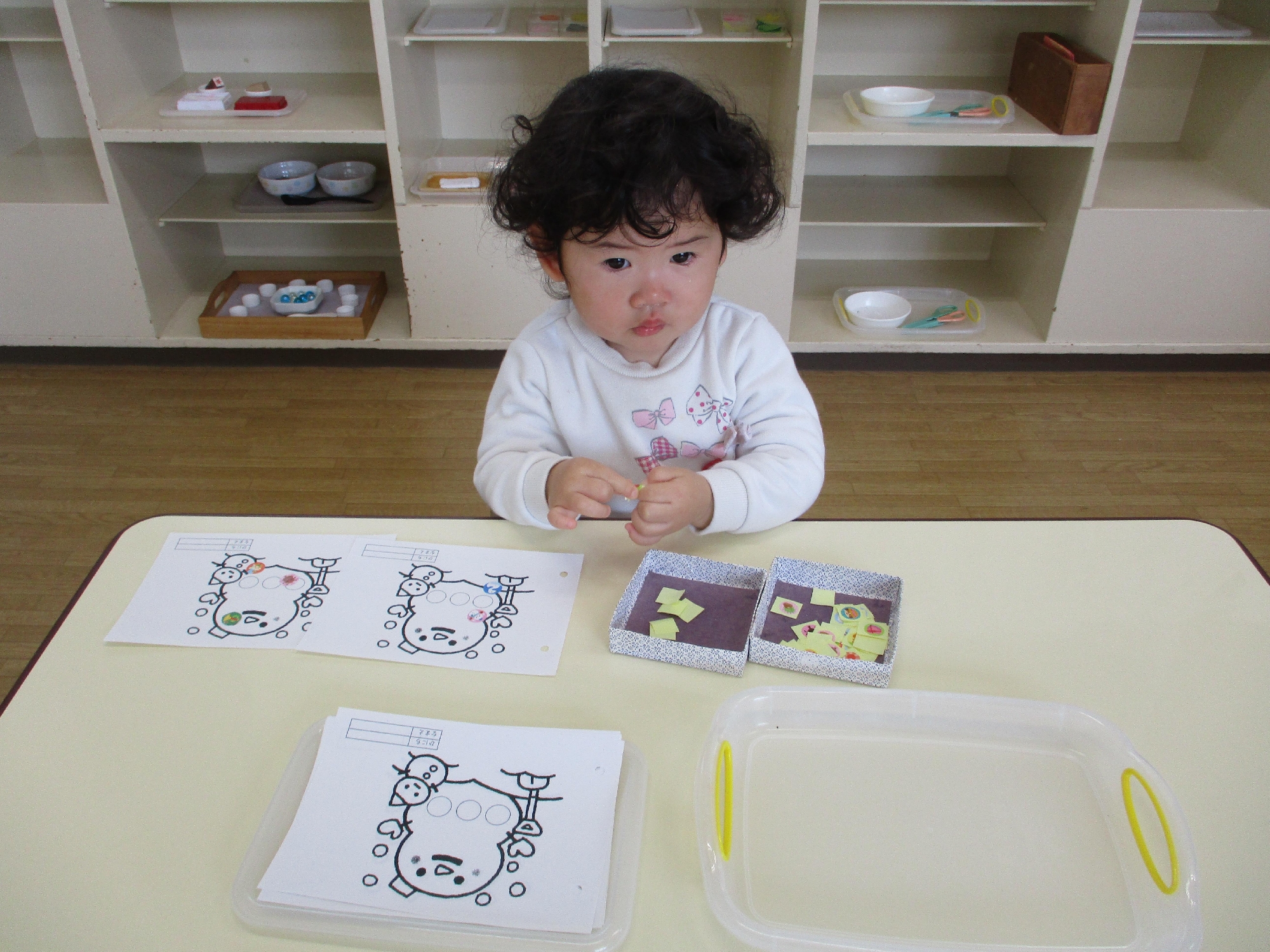 お部屋に入ると、涙も止まりお仕事に取り組んでいます!